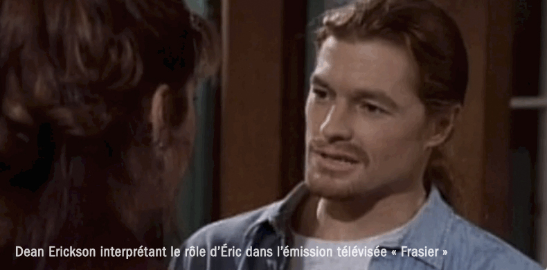 DEAN: Jouer dans Frasier était intimidant à cause des grands acteurs impliqués comme Kelsey Grammer, David Hyde Pierce, Jane Leeves et d'autres. J'étais surtout un figurant. Franchement, tout ce je voulais c'était me souvenir de mes répliques et ne pas trop me placer dans l'embarras. Toutefois, j'ai eu la chance d'embrasser Jane Leeves dans une scène qui a été coupée au montage. (Super!) Kelsey m'a dit que je disais une de mes répliques trop lentement. (Pas aussi super, mais vrai!) Et David et moi on allait au même gym à l'époque, et il est l'une des personnes les plus sympas que j'ai jamais rencontrées.