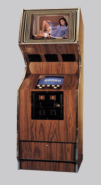 Casino Strip uses actual film footage of live actors and actresses on a Laser Video Disc. It includes two large color monitors, one for the cast of characters and one for your poker hand. All this packaged in a sturdy solid wood cabinet. This is a continuation of Status Laser Video Disc Games. Coming Soon CASINO STRIP #2. Also available "THE LASER SHUFFLE."