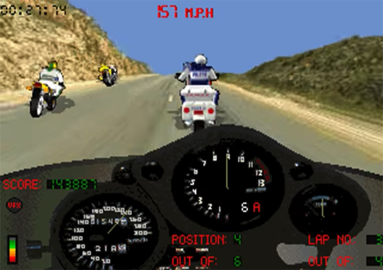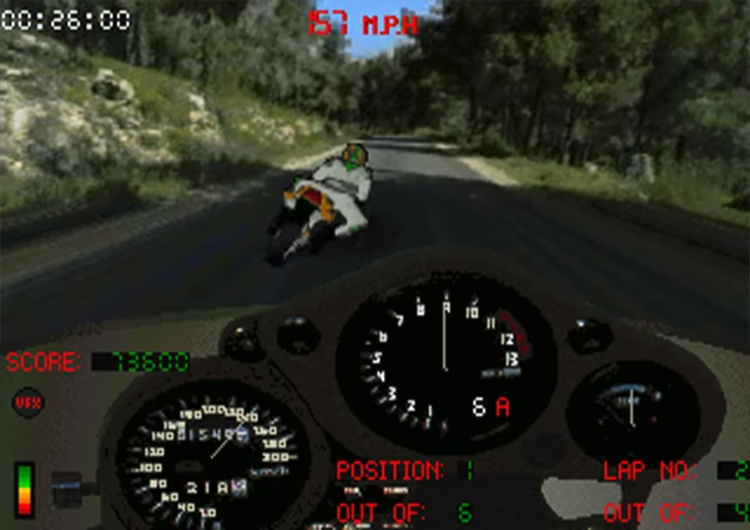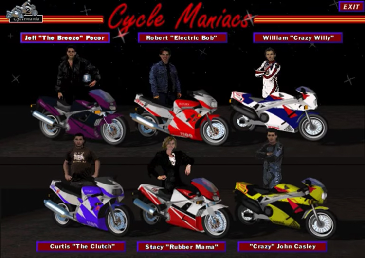 • Cyclemania uses 2D sprites for digitized racers/vehicles/obstacles and features live-action, full-motion video for all roads and landscapes.
