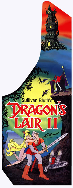 Dragon's Lair II from Leland Corporation is more than an exciting sequel to the hit arcade game. With 3 years of work on completely new animation art, Dragon's Lair II explores an exciting new dimension in interactive video: Time Travel!