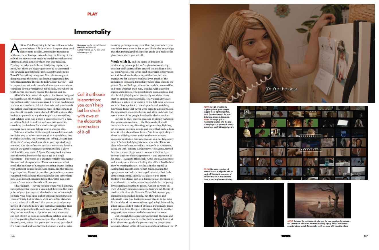 • IMMORTALITY received the coveted 10/10 review from Edge Magazine. Only 23 games since 1993 have received a perfect 10/10 score.
