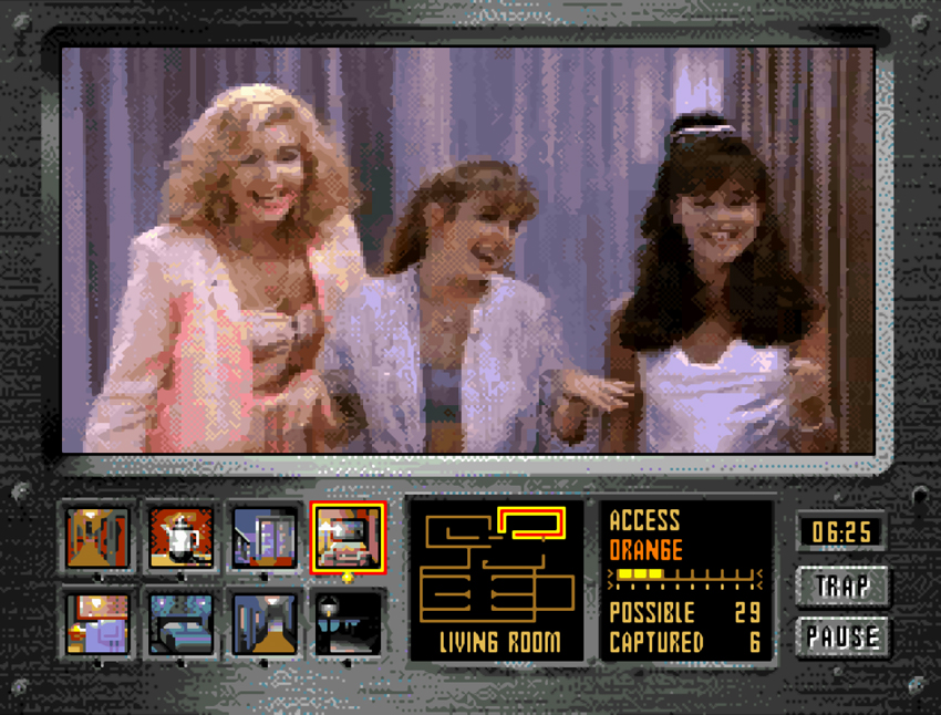 • Night Trap was originally developed by James Riley, Rob Fulop, and Tom Zito for the unreleased Control-Vision system (codenamed NEMO) which used VHS tapes instead of cartridges.