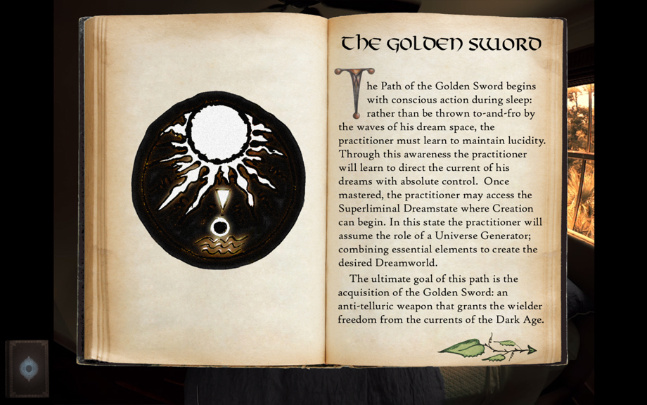 The player takes on the role of the practitioner; a master of lucid dreaming tasked with ending the Dark Age through the acquisition of the anti-telluric Golden Sword. The player must mix and match various dreams and soundscapes to solve puzzles, acquire clues, and create the Dreamworld of the Golden Sword.